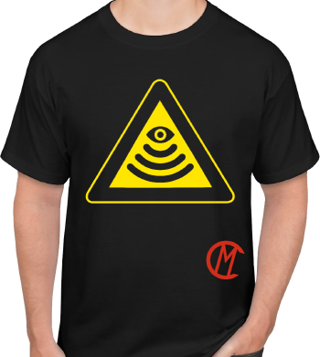 A warning sign that combines the WiFi symbol and the all-seeing eye. In the unlikely event that the hotspots are tracking you….